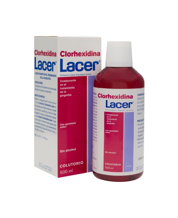 Lacer Clorhexidina colutorio 500ml es un enjuague bucal formulado con clorhexidina. Con propiedades antisépticas, este producto ayuda a tratar la gingivitis y periodontitis y a prevenir infecciones y lesiones de la mucosa bucal, como el sangrado de encías o la aparición de aftas o llagas linguales.
