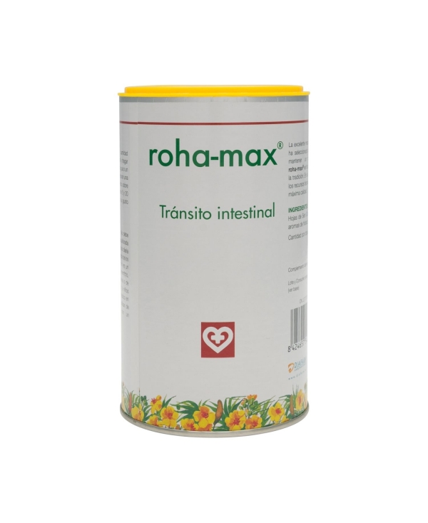 Roha-Max® Tránsito Intestinal 130g es un complemento alimenticio natural y muy fácil de tomar que puede ayudar como laxante y devolver el dinamismo al organismo, contribuyendo a mantener un tránsito intestinal normal. Gracias a la combinación de plantas estimulantes como las hojas de sen y de menta y aromas de hibisco o raíz de regaliz, Roha-Max® Tránsito Intestinal cuenta con efectos osmóticos y astringentes, que ayudan regular el ritmo intestinal.