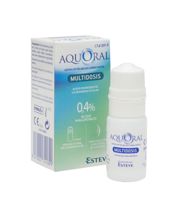 Aquoral gotas oftalmológicas 10ml está especialmente indicado para proteger y calmar los tejidos oculares de las molestias e irritaciones provocadas por factores externos. La composición de Aquoral gotas oftalmológicas con ácido hialurónico, N-acetilglucosamina y ácido glucurónico, actúa directamente sobre el grado de humectación ocular, favoreciendo la distribución de la lágrima por el ojo sin dañar la córnea ocular.