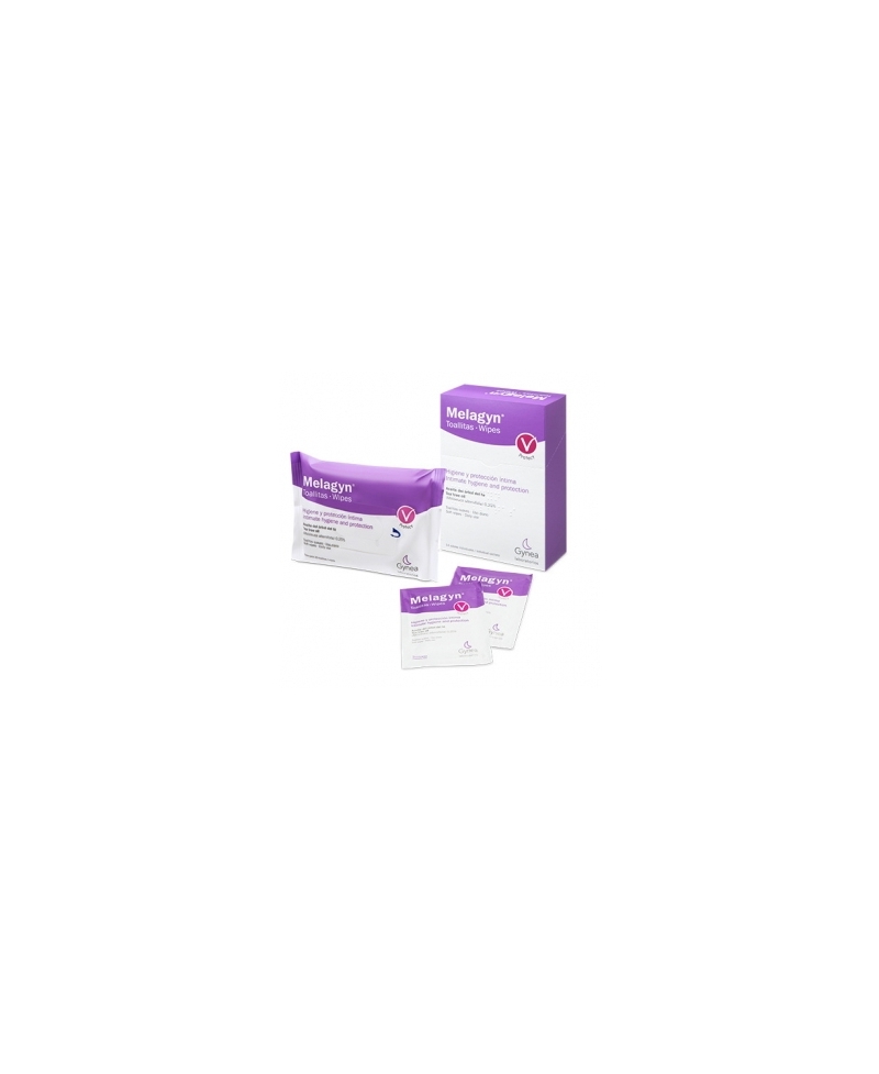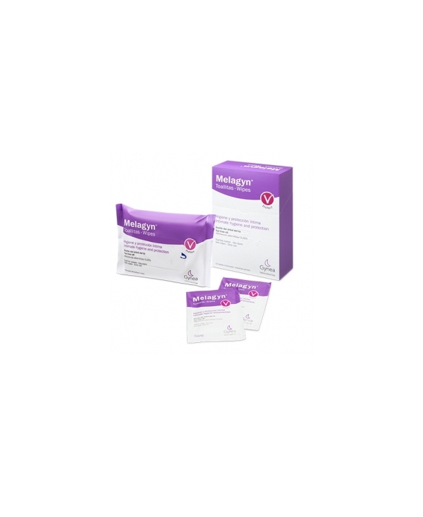 Melagyn® Toallitas Sachet 14 sobres son unas toallitas especialmente diseñadas para la higiene íntima de la mujer. Su fórmula contiene una solución al 0,25% de melaleuca alternifolia. Poseen un pH 8,5 que no altera el pH vaginal y que genera una pantalla protectora previniendo el crecimiento de hongos. Estas prácticas toallitas permiten en la mujer la máxima la higiene íntima, sin aclarado en cualquier lugar y momento, aportando una sensación de bienestar, frescor y confort. Además, poseen un agradable olor natural de eucalipto que le confiere las propiedades de un desodorante natural. También pueden usarse por los hombres en su higiene íntima. Están especialmente indicadas en aquellas situaciones en las que el hombre padece picor, escozor o malestar genital.