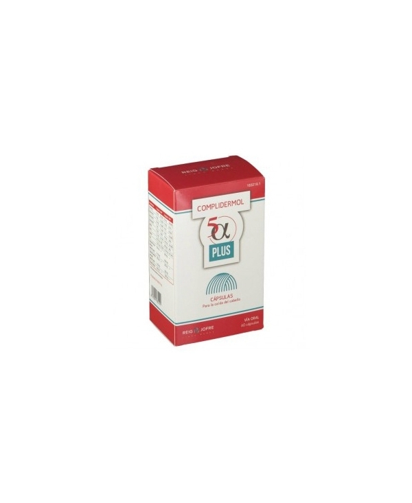 Complidermol 5 alfa Plus 60 Cápsulas es un suplemento desarrollado para prevenir y combatir la caída del cabello, tanto en hombres como en mujeres. Gracias a su composición a base de ingredientes dermoactivos, como biotina, que estimula la síntesis de queratina, tocoferol, que cuenta con propiedades antioxidantes que combaten los radicales libres. Además de oligoelementos como selenio, hierro o zinc, que resultan fundamentales en la estructura capilar y vitaminas B3, B5 y B6, que regulan la secreción sebácea y favorecen la regeneración del cabello.