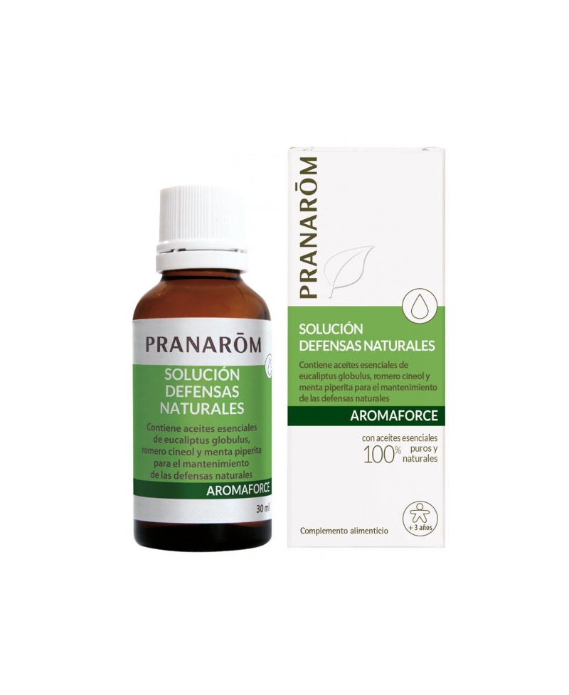 Pranarom Aromaforce Solución Defensas Naturales es cun complemento alimenticio formulado con aceite esencial de menta piperita para el mantenimiento de las defensas naturales.